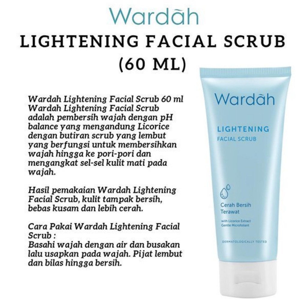 Basahi wajah dengan air dan busakan lalu usapkan pada wajah. Penggunaan scrub wajah bisa membuat kulit terasa lembut dan kencang. Produk wardah white secret exfoliating scrub cukup digunakan sebanyak dua hingga tiga kali seminggu di malam hari. Angkat dengan washlap atau spons basah dengan cara dilembabkan terlebih dahulu, baru diangkat. Cara menggunakannya, oleskan sedikit pada telapak tangan dan basahi dengan air. Pijat lembut dan bilas hingga bersih. Dalam keadaan kering sebelum mandi oleskan wardah olive soft scrub pada seluruh kulit tubuh dan wajah lalu gosok merata diamkan 12 menit sampai . Ilustrasi wardah white secret exfoliating lotion. Wardah lightening gentle exfoliator, pembersih wajah ph balance dengan scrub yang lembut di kulit (gentle microfoliant). Review dan manfaat peeling wardah. Meskipun begitu, dua produk ini merupakan jenis yang berbeda, baik secara kemasan maupun cara pemakaian.